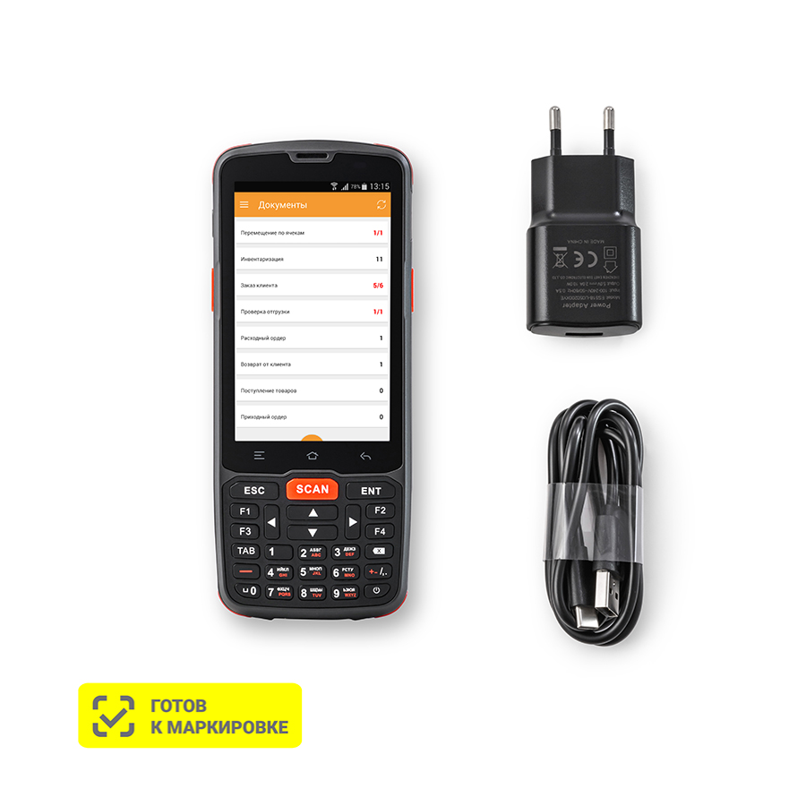 | Комплектация | ТСД, АКБ, БП, кабель Type C - USB 2.0, ремешок |